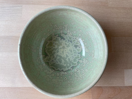 Collection émaillée en vert pâle avec nucléations apportant une touche de fraicheur à son intérieur.
