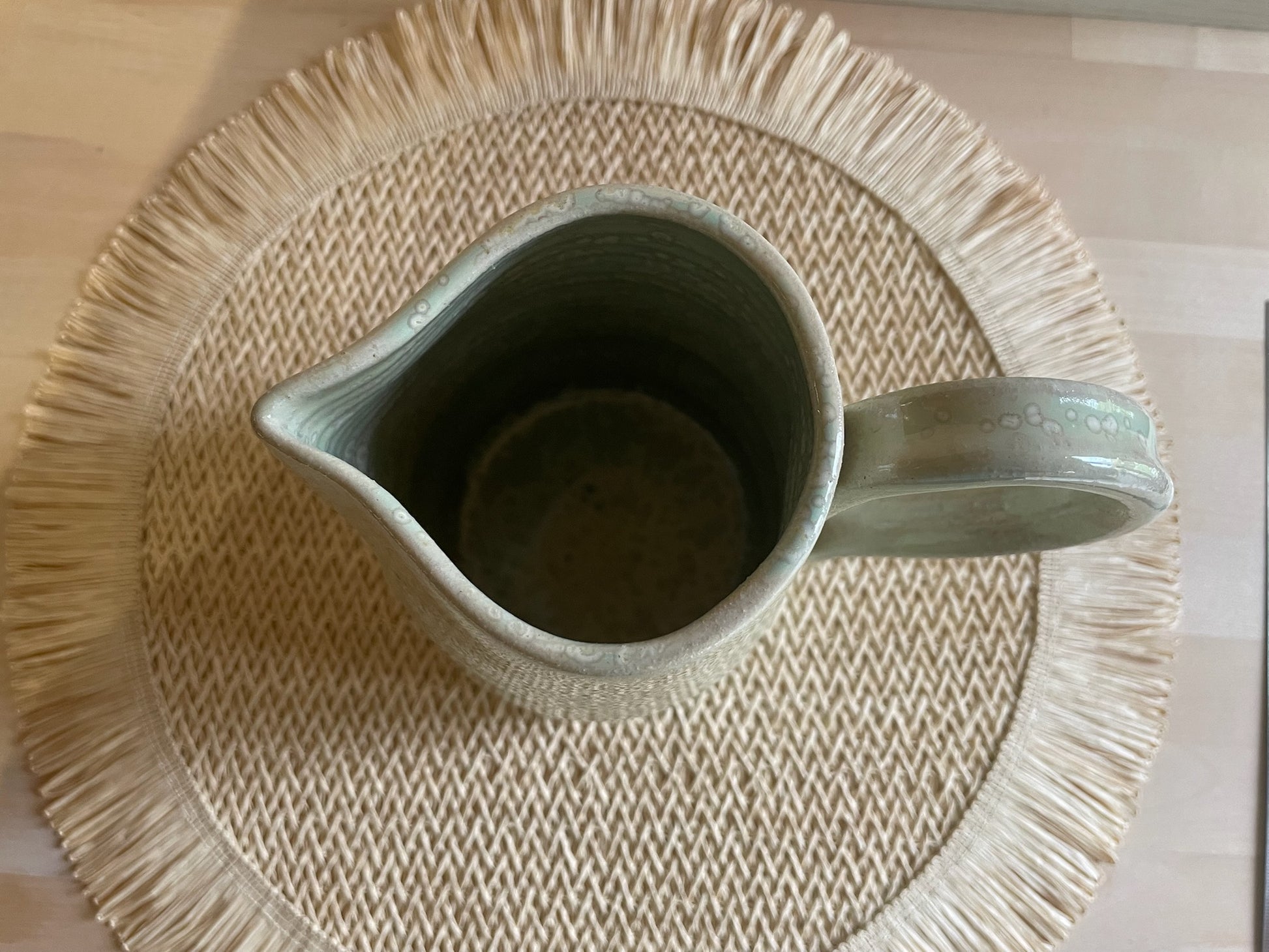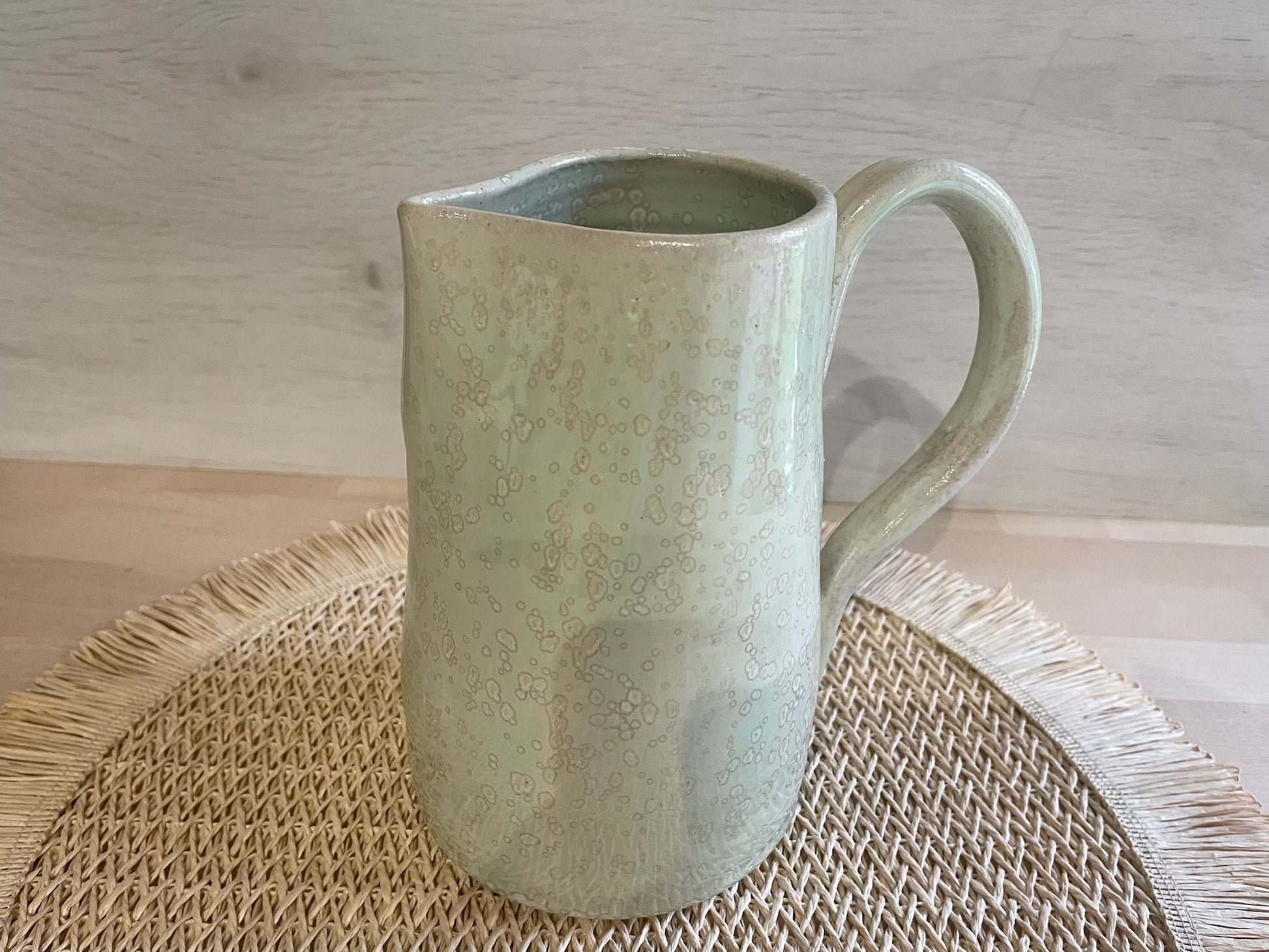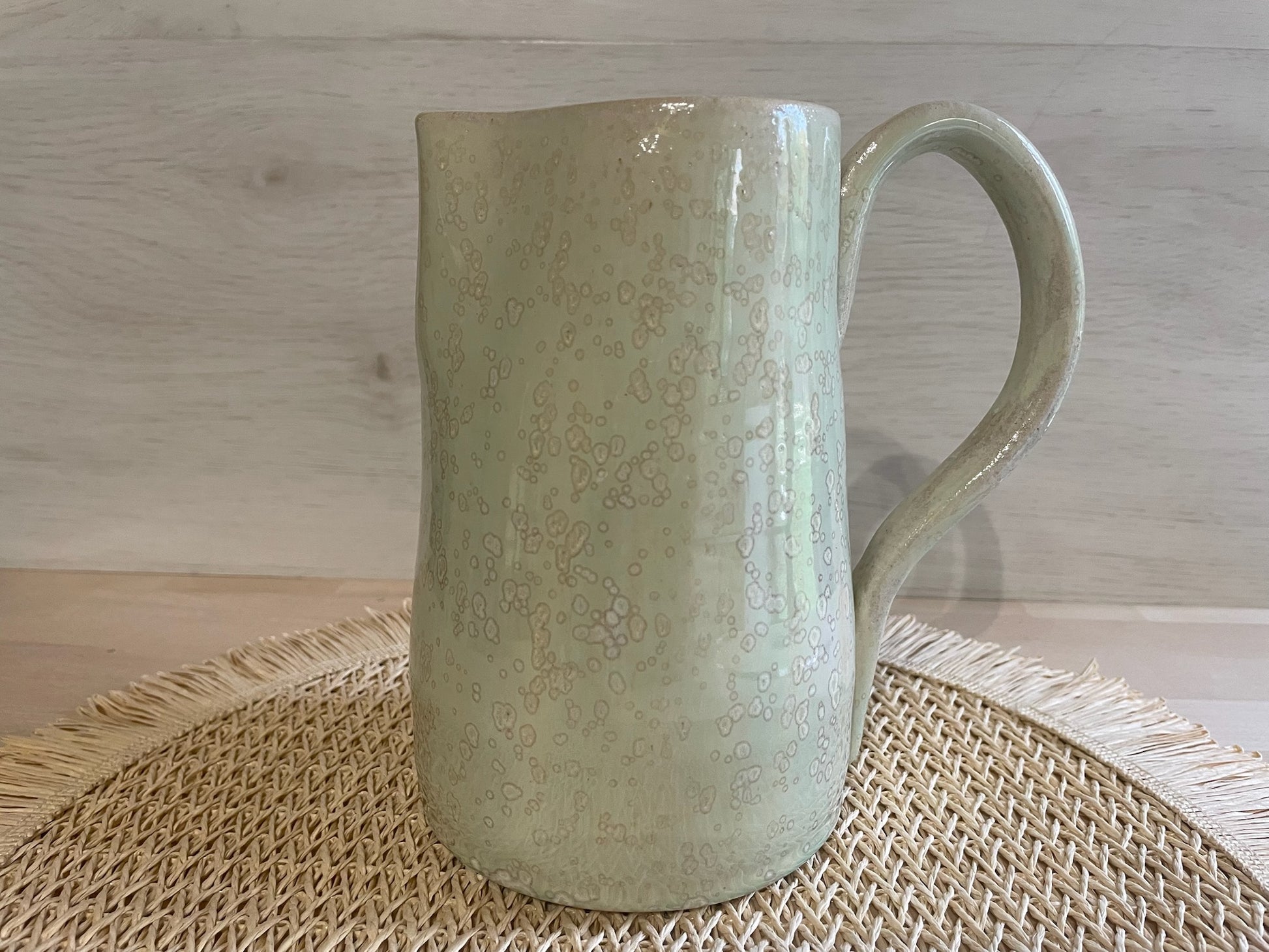 Ce pichet de la collection Printemps en grès émaillé est à la fois élégant et fonctionnel. Son émail vert cristallisé apportera une touche de fraicheur à votre table. Durable et facile à nettoyer, il sera idéal pour servir des boissons fraîches ou pour décorer votre cuisine.