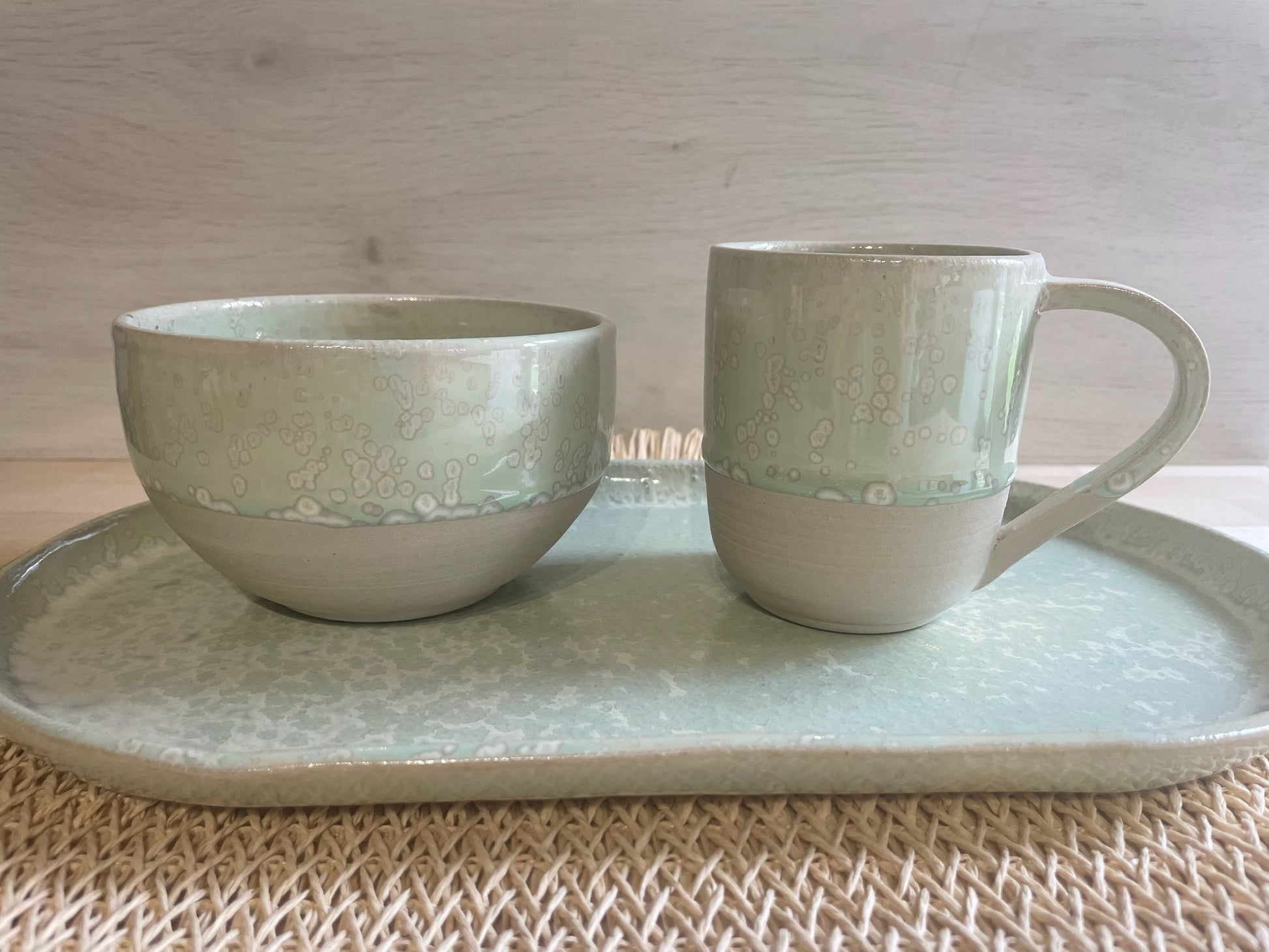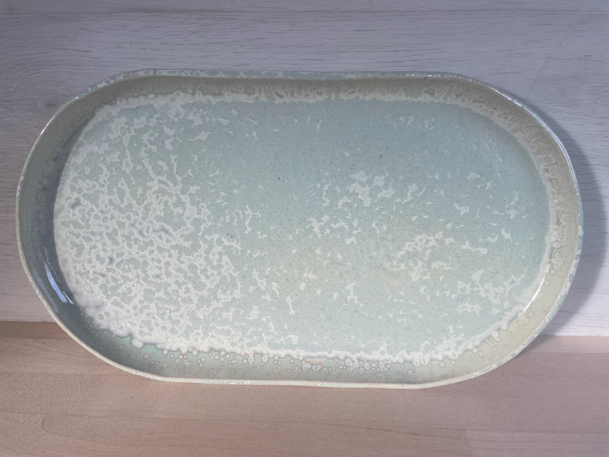 Apportez une touche d’élégance naturelle à votre table avec le plateau de la collection Printemps. Fabriqué en grès émaillé vert pâle orné de délicates nucléations, il allie esthétique et robustesse. Idéal pour sublimer vos plats ou vos objets.