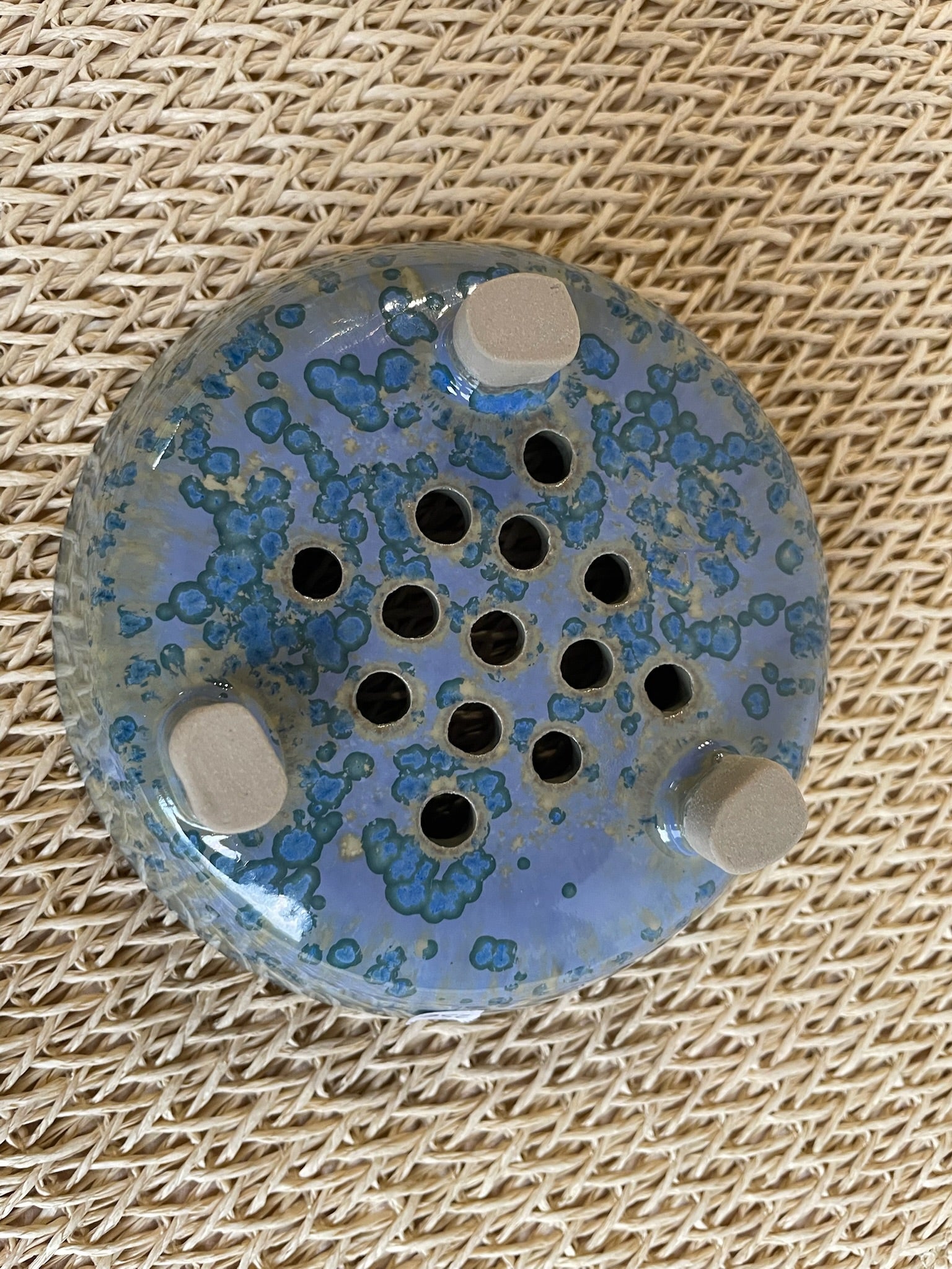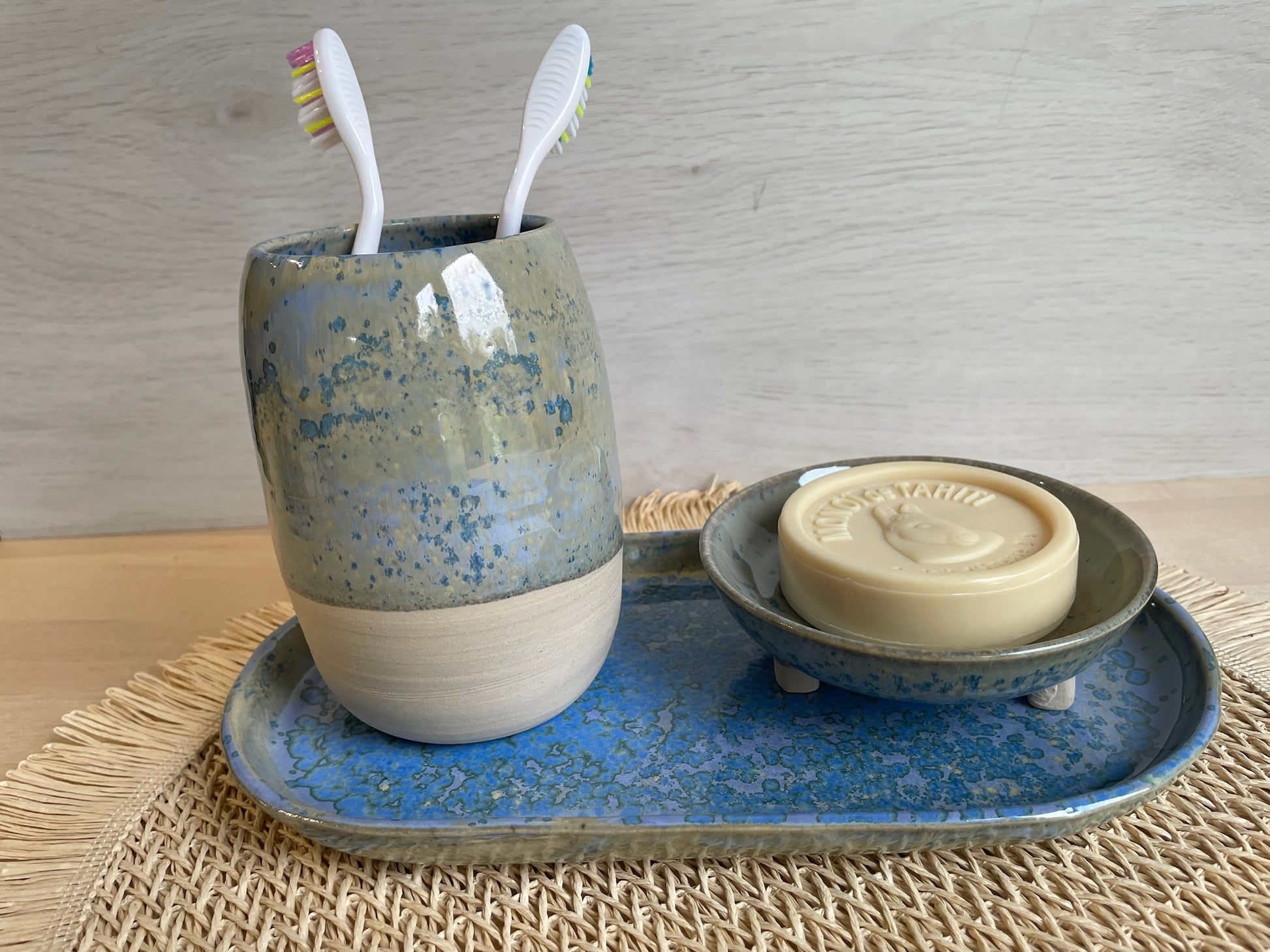 Apportez une touche d’élégance à votre salle de bain avec ce porte savon de la collection Automne. Confectionné en grès émaillé bleu-vert avec de subtiles nucléations, il allie esthétique et fonctionnalité. Ses trois pieds relevés assurent une parfaite évacuation de l’eau, protégeant votre savon et prolongeant sa durée de vie. Complétez votre espace en l’associant au gobelet et au petit plateau assortis pour une harmonie parfaite et un style raffiné.