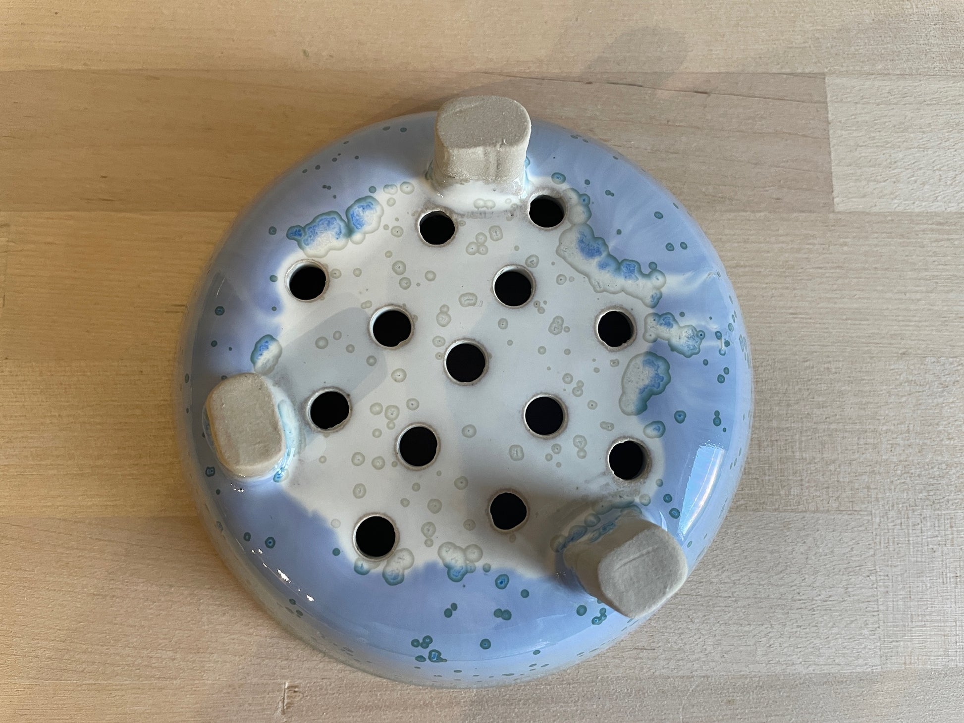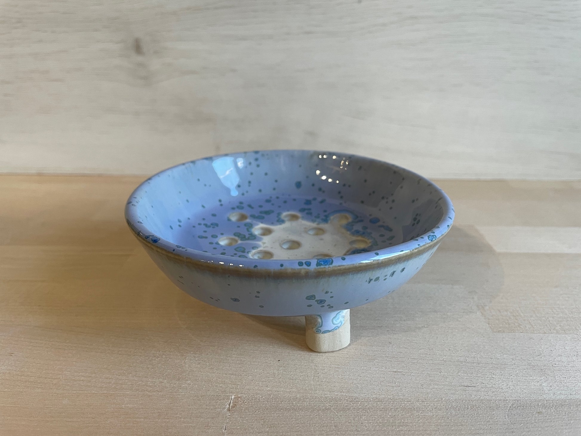 Apportez une touche d’élégance à votre salle de bain avec ce porte savon de la collection Banquise. Confectionné en grès émaillé blanc nacré et bleu avec de subtiles nucléations, il allie esthétique et fonctionnalité. Ses trois pieds relevés assurent une parfaite évacuation de l’eau, protégeant votre savon et prolongeant sa durée de vie. Complétez votre espace en l’associant au gobelet et au petit plateau assortis pour une harmonie parfaite et un style raffiné.