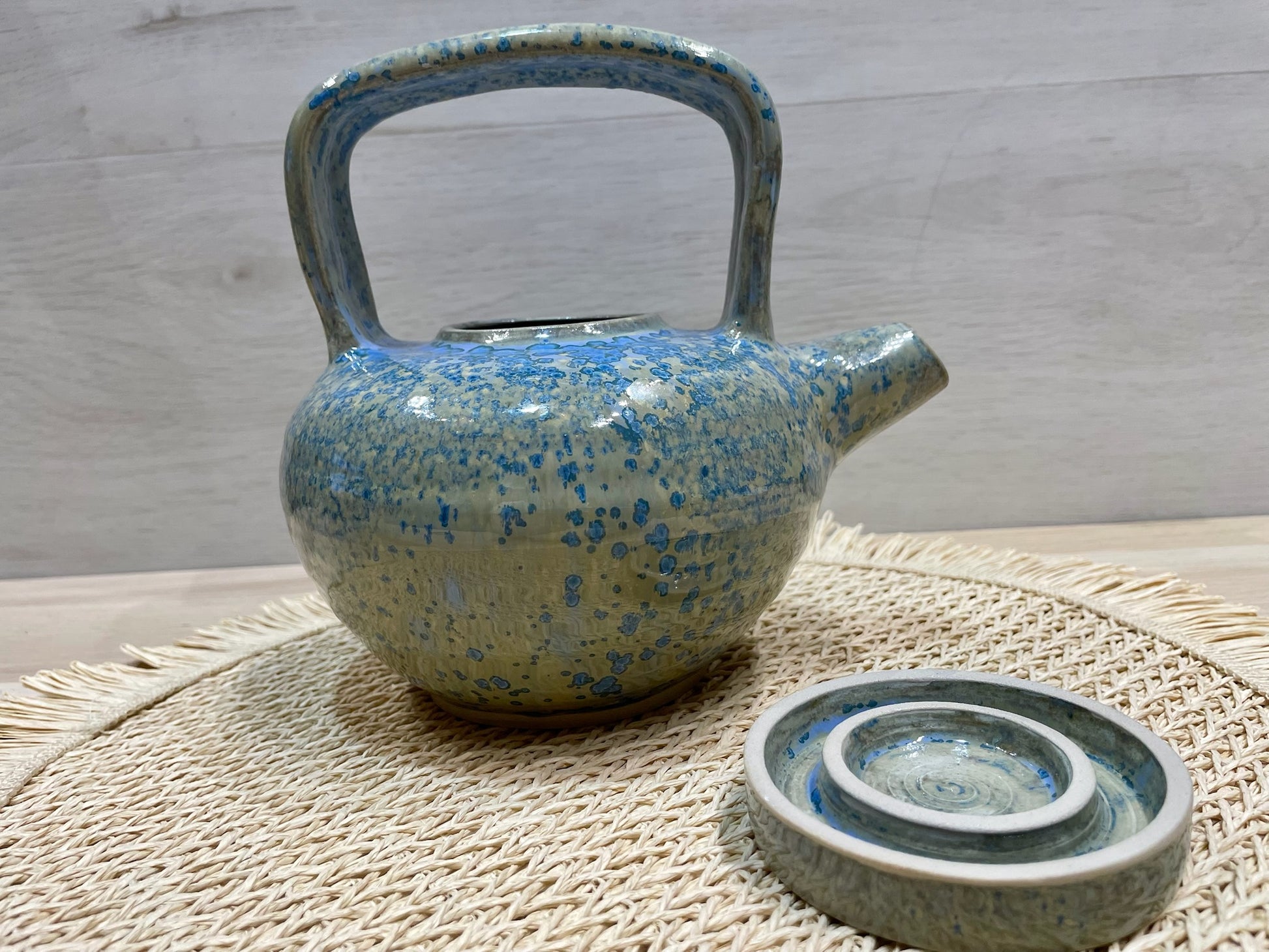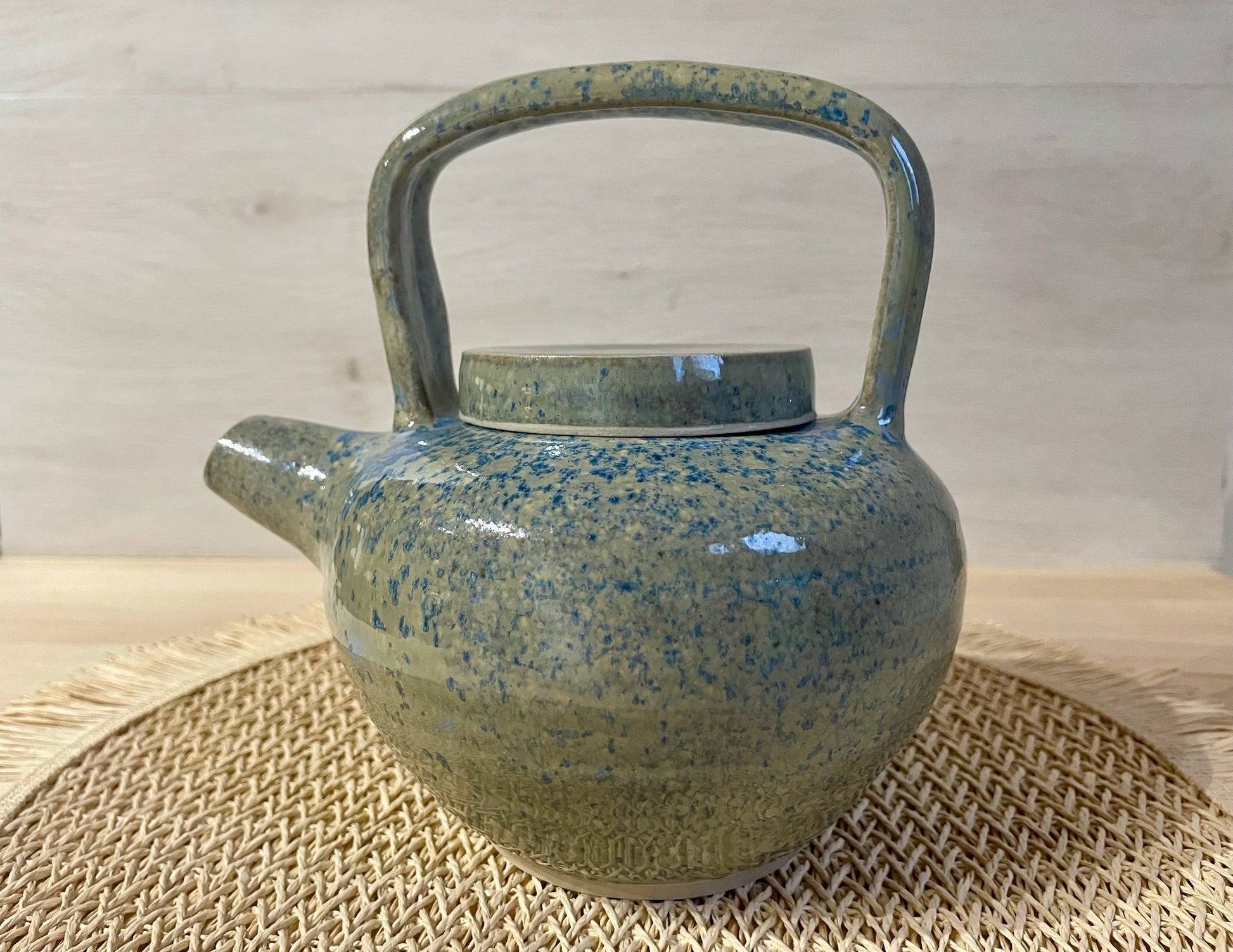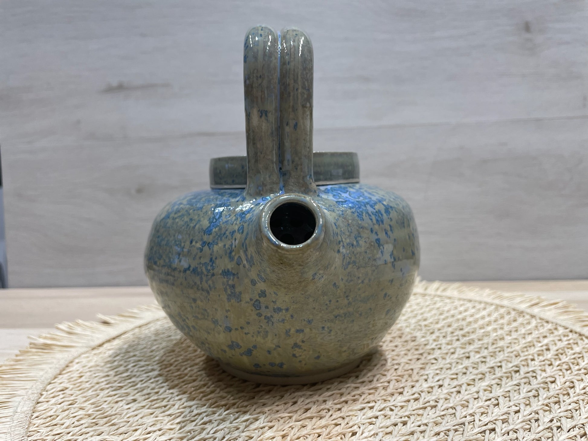 Apportez une touche de magie à vos pauses thé avec la théière Automne ! En grès émaillé bleu-vert parsemé de jolies nucléations, elle se distingue par son anse originale et son caractère unique, fait main avec amour. Une vraie complice pour des instants infusés de bonheur et de charme décalé.