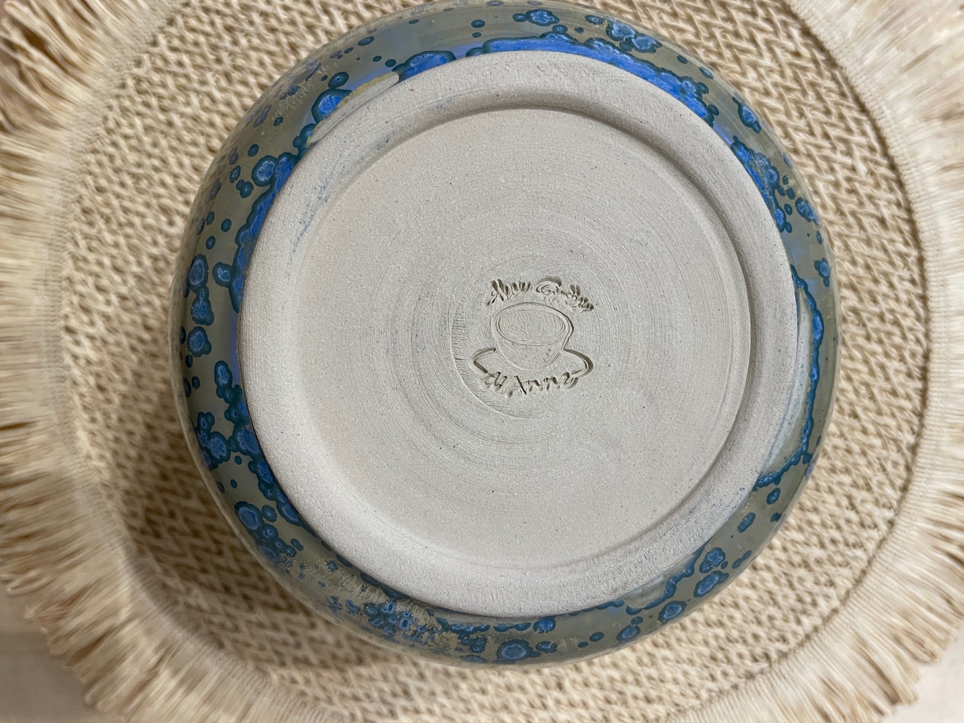 Ce vase est une pièce unique de la collection Automne. Il capture l'essence poétique de la saison. Façonné en grès émaillé, il arbore une teinte bleu-vert subtile rehaussée de délicates nucléations qui crée cette couleur unique. Un objet de décoration intemporel qui apportera caractère et élégance à votre intérieur.